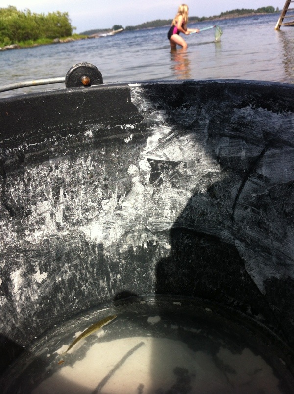 Milla och jag tog en sväng ner till havet för att testa håven, och kanske bada lite. Inte så barnvagnsvänlig väg, så du fick stanna hemma med mamma. Nästa år plaskar du säkert omkring här nere vid badplatsen.