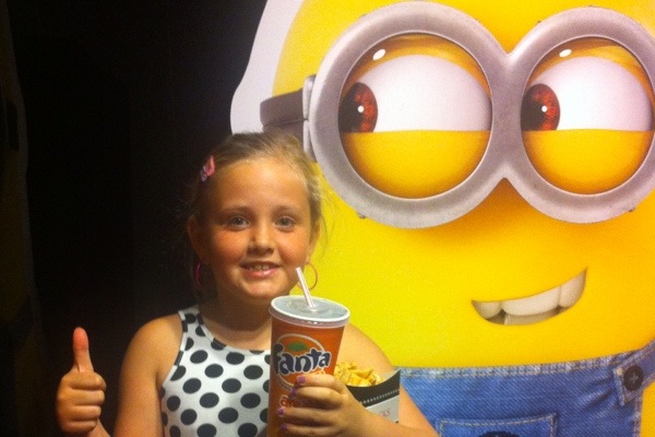 Du fick följa med mamma till hennes jobb och hälsa på, så Milla och jag passade på att gå på bio. Dumma mej 2. När vi bokade spöregnade det, men när vi skulle kliva in i den mörka biosalongen sken solen. Bra att det slutade regna ändå, för Oliver är inne på tredje och sista festivaldagen på Bråvalla. Tyvärr ser himlen mörk ut igen. Som att ondskan står redo att veckla ut sina tentakler över oss. Vi får kramas hårt i natt älskling.