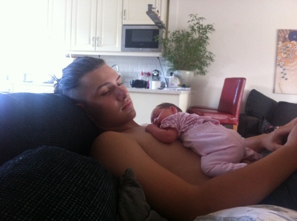 Det här är din bror anno 2013. Han är 16 år nu. Vi kör åtta års spann mellan er syskon. Det gör tydligen orangutanger med. Vilket förklarar vår familjs förmåga att skala bananer med fötterna. Han gillar att ha dig hos sig. Gärna på bröstet. Han brukar passa dig när vi handlar, skjutsar, tvättar, klipper gräs m.m. Det gör mig glad att han känner sån kärlek till sina små systrar. Även om han ryker ihop med Milla ibland.