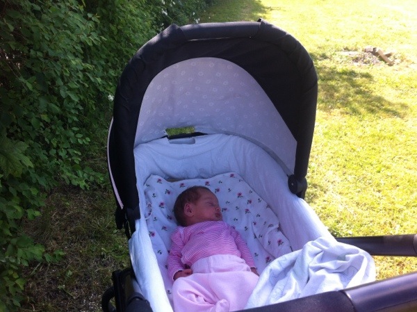 Jag måste säga att det är en helt magisk årstid att få barn. Det är ett tips jag ger dig, gör mig till morfar i juni månad. Du har legat i skuggan och sovit, medan Milla och jag spelat fotboll. Mamma är i stan och hämtar din mormor. Hon ska följa med till Millas skolavslutning. Nej, dags att du vaknar snart.