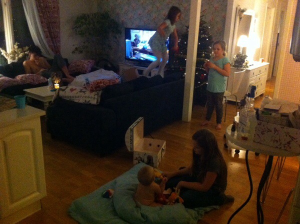 I dag är det den tredje advent. Dina kusiner är här och leker med dig. Ebba och Elsa. De kom redan igår och sov över. Sanna jobbade kväll igår och förmiddag i dag, så det är bara jag och alla ni barn här. I går köpte vi en gran, och tjejerna klädde den. Nu har de precis ätit frukost och du sover.