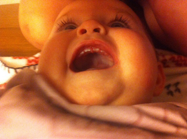 Mat. Du gillar allt. Jag har inte upptäckt något som du inte gillar. Vörtbröd är nog favoriten hittills, du var som i extas, gapade och viftade med dina små armar så att du höll på att lätta ur stolen. Du får någon typ av vanlig mat nån gång om dagen, två, tre kanske, men det är fortfarande vällingen som är din huvudföda.