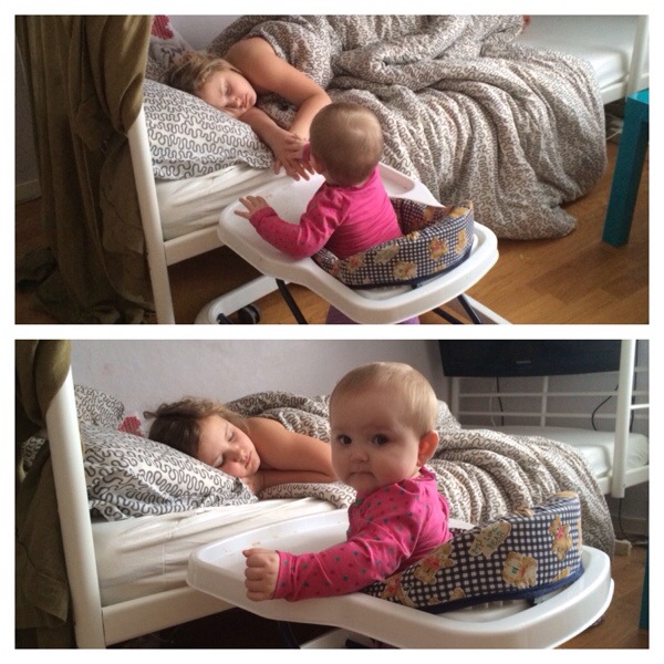 Du har sovit middag och Milla och jag passade på att baka scones. Sanna jobbar och Oliver är hos Tussi. Det har varit en lugn helg, Sanna har jobbat fredag, lördag, söndag. Din farmor var här och hälsade på oss i går eftermiddag, annars har vi inte gjort något speciellt. Milla har hittat facetime på Ipaden, så att man kan se den man pratar med, och ringer och terroriserar alla hon känner. Mest farmor och mamma på jobbet.