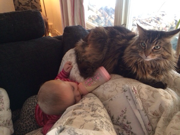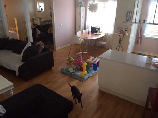 Milla ska med få lite nya grejer. När Sanna kommer hem så ska vi ta en sväng till Linköping, Ikano, för att titta på tapeter och prylar så att vi kan fixa till din systers rum lite. Du vaknade nyss och sitter och halvsover i Millas knä. Så jag fick ta över bakningen. Nu måste jag ta ut sconesen ur ugnen. Vi hörs senare.