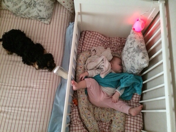 Grannens hundvalp Bella passar på. Tillfället gör tjuven.