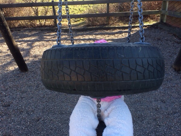 Det blev en rolig dag med nya upplevelser och bekantskaper. På förmiddagen tog vi en promenad i vårsolen, du, jag, mamma, Milla, och Tila. Vi gick förbi Ica och köpte lite fika, sen till ett närliggande dagis, vårt tredjeval på din kölista, Vickelby. Du och Milla lekte, du åkte rutschkana och gungade för första gången i dit liv. Du älskade det och skrattade högt.