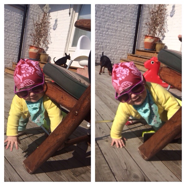 I måndags på babysången så kröp du in mitt i cirkeln och ställde dig upp. Utan stöd. Du chockade dig själv, stod där förvånad, innan du satte dig ner med en blöjduns. Din mamma jublade inombords. Jag var inte där så hon hade ingen att dela miraklet med. Ingen av de andra föräldrarna reagerade naturligtvis. Jag har sett tendenser, du har påbörjat att ställa dig upp utan att hålla i något hela förra veckan, men blivit lite skraj och aldrig fullföljt. Nu lurar första steget runt hörnet.