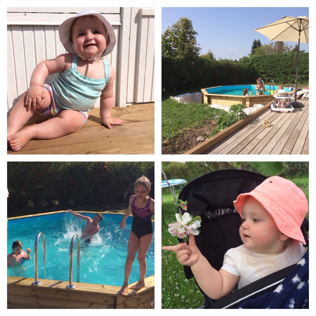 Skönt att få komma hem. Jag har massor att göra. Vill komma igång med att bygga altanen runt poolen. Få ordning på trädgården innan sommaren, så att man slipper vara livrädd att du ska ramla ner i gropen runt stommen. Men poolen är redan invigd, med råge. Det har varit helt fantastiskt majväder, nästan 30 grader varmt förra helgen, och fullt med badande ungar hela helgen. Milla, Thilde, Kevin, Hilde, Jonna, Emilia och hennes lillasyster Meja, grannbarnen Anton och Ebba, kusinerna Ebba och Elsa. Ja, till och med du har badat älskling. På söndagen var det mors dag, och Morfar Anders, Mormor Katarina och Emma var här en sväng, och hundra ungar, och senare även morfar Stig. Sanna har gjort ordning uterummet. Tömt, städat lagt in en skön matta. Det blev en stor härlig yta för dig och dina leksaker.