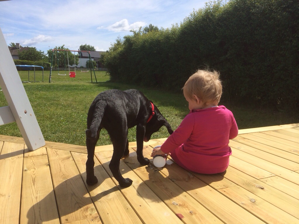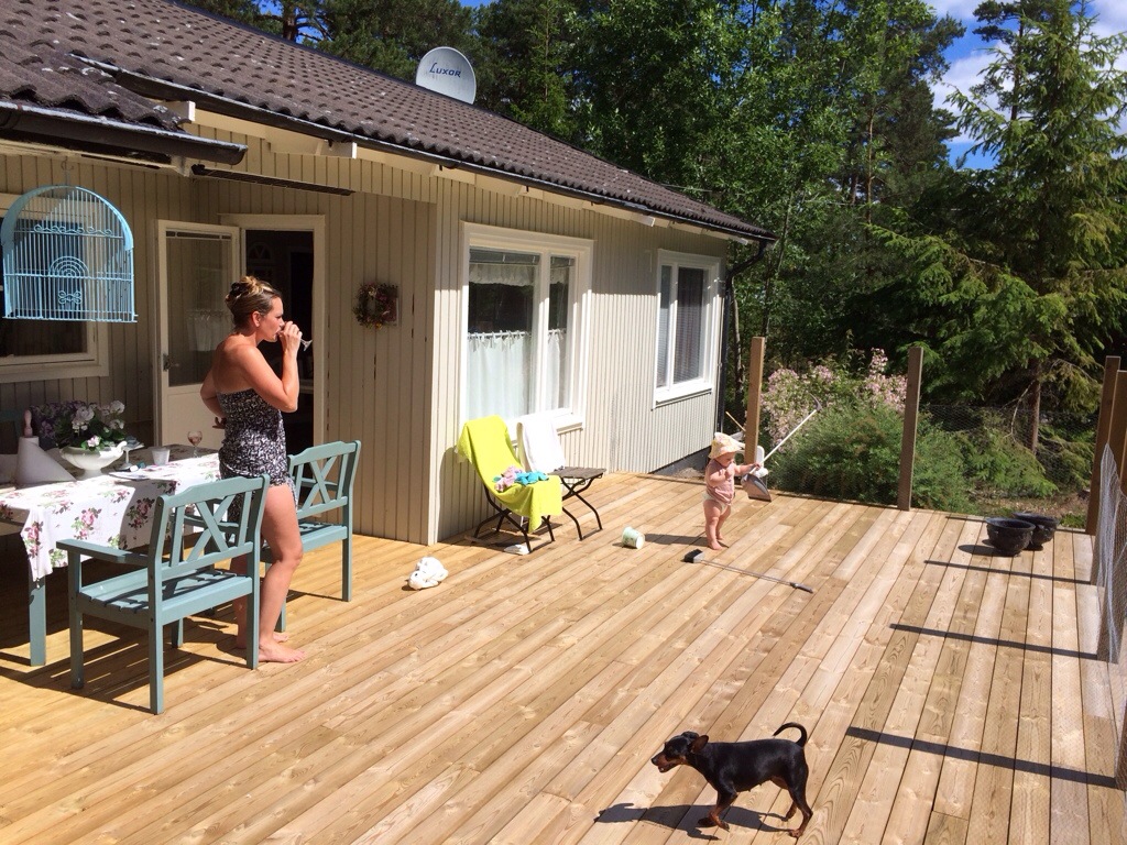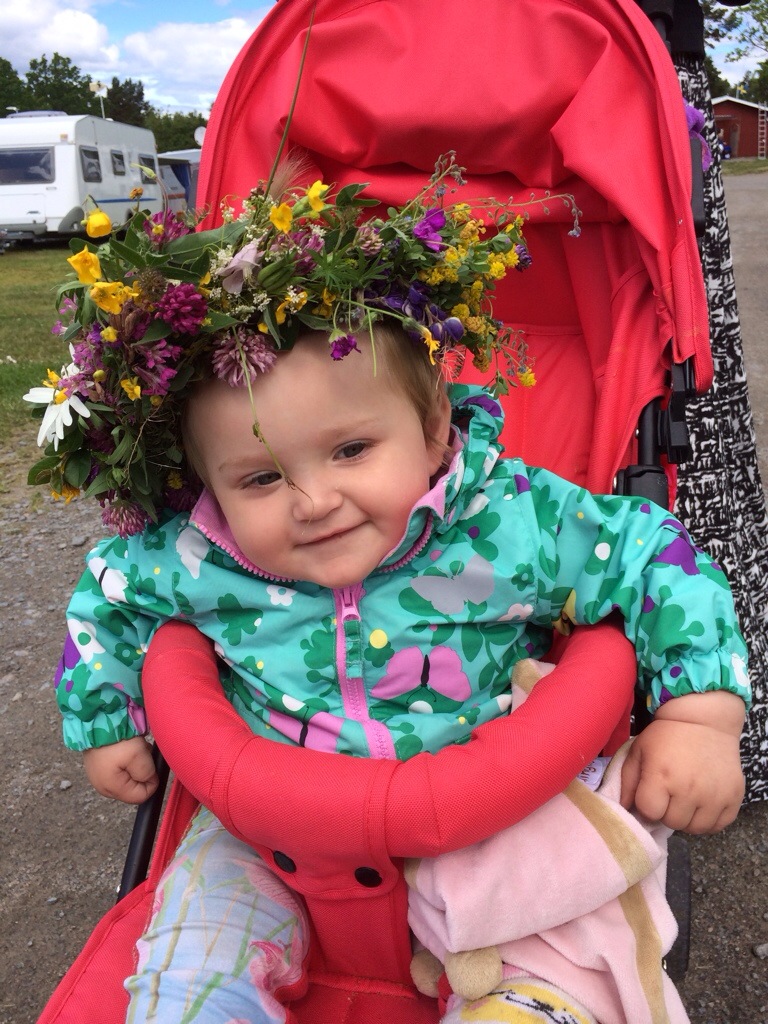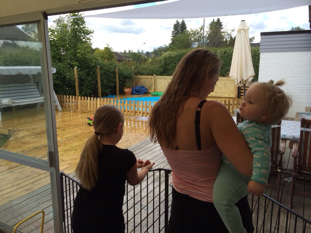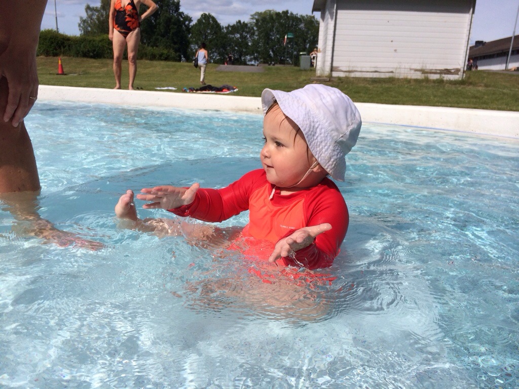 Vad har vi gjort sedan sist då? Ebba Elsa och Astrid har varit här några dagar. När solen tittade fram i ett litet hål mellan regnmolnen så passade vi på att åka till Himpa och bada. Du ville aldrig gå upp ur vattnet fast du trillade och doppade huvudet hela tiden, och jag satte mig på en humla. Vi har gjort massor mer, men det var väl det viktigaste. Eller det som lämnade starkast intryck, i både minne och stjärtveck.
