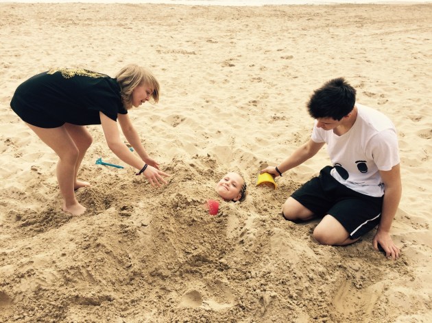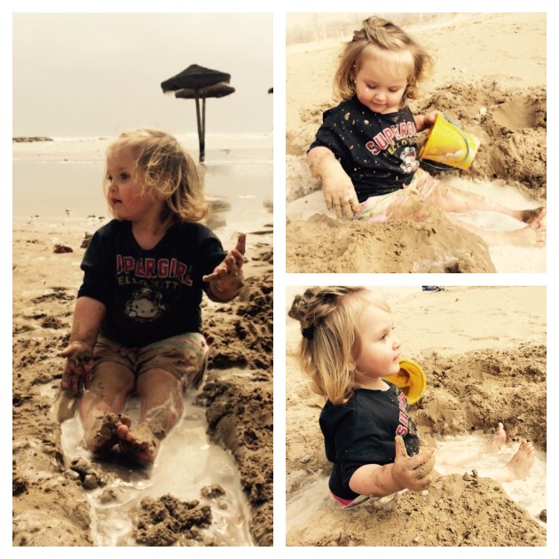 Tjenare din lilla filur. Vi befinner oss för närvarande i Spanien, Torrevieja, och du är alltså utomlands för första gång i ditt liv. Din morfar hyr en lägenhet här. Det är förvisso lågsäsong och är ju inte den solsäkraste perioden direkt, men vi har ändå haft otur med vädret. Förra veckan var det stekhett, och nästa verkar det bli fint med, men vi har bara haft två/tre dagar på stranden, i övrigt började veckan lite lätt med regn, och slutade med att det blåste satan. Vågorna är ju lite härliga på sitt sätt. Havet ryter. Det hindrar ju inte dig från att bada och leka i sanden. Enda ungen på stranden på hela Spanska östkusten. I dag har du varit Torreviejas strandpromenads stora underhållning, pensionärerna skrattade åt dig när du grävde loss.
