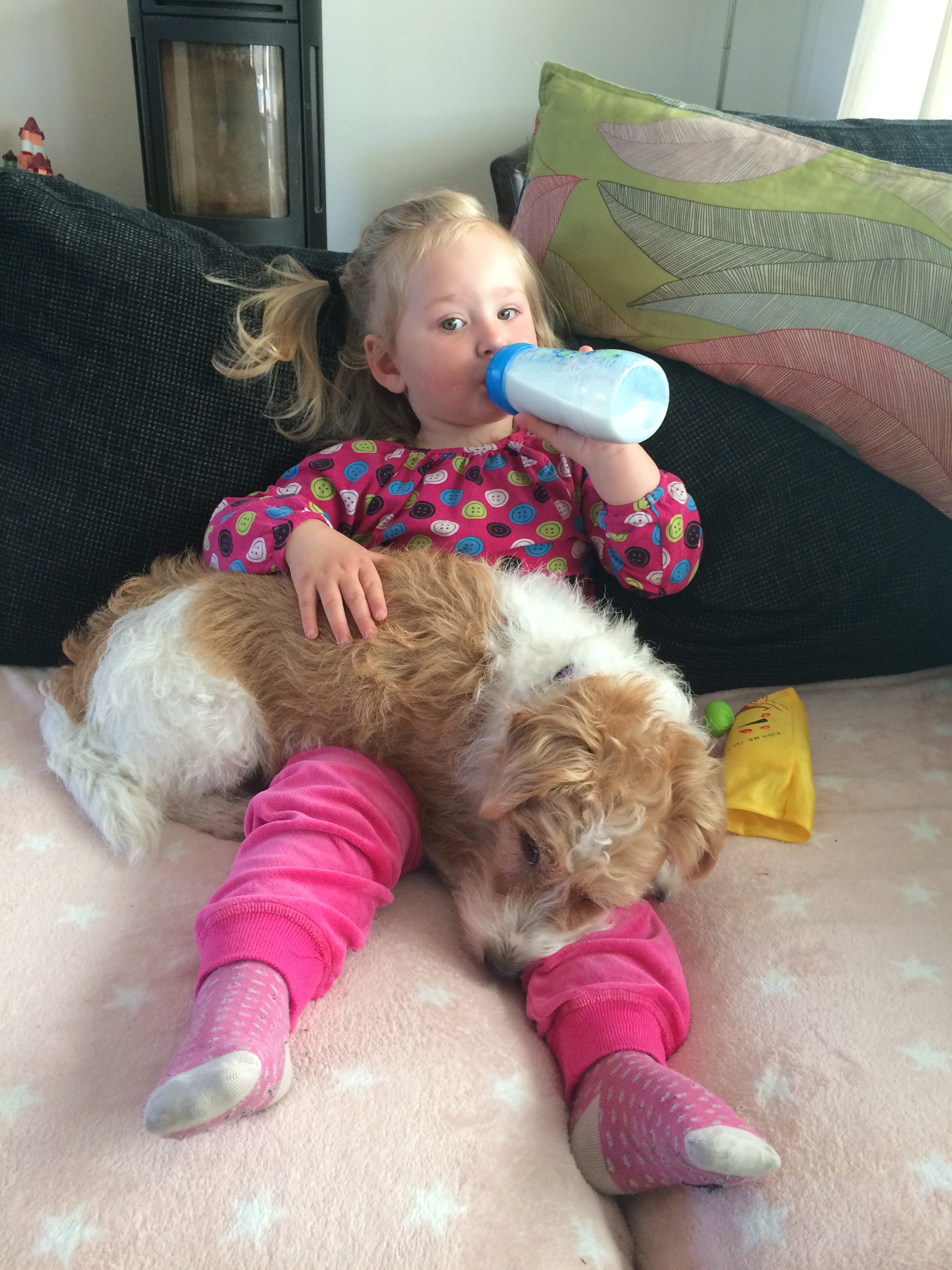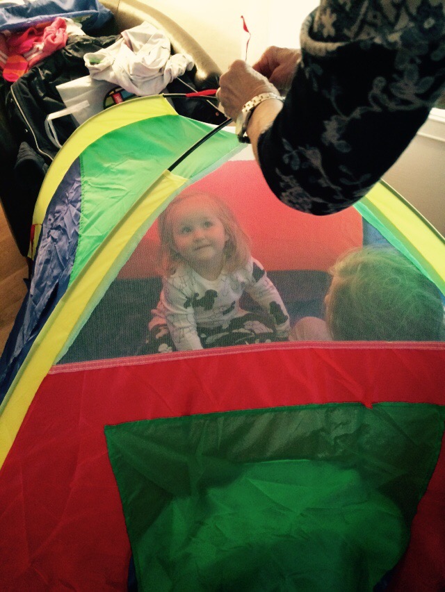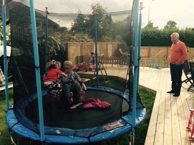Du. Du kan ta på dig själv. Byxor, skor, tröjor, jacka. Du gillar att sno andra familjemedlemmars kläder, och brukar gå runt med Millas topp som kjol, någons tröja som klänning, eller ett par simglasögon som halsband. Du är rörlig. Hoppar, klättrar, och springer. Cyklar på trehjuling, och kan ta dig fram på tvåhjulig sparkcykel. Du tar dig upp var du vill, släpar runt stolar och pallar i hela huset. Brer din egen smörgås, och sitter på vanliga stolar när du äter. Du gillar fortfarande att bada, men är inte längre lika förtjust i att tvätta håret. Det går, men under protest. Du har kissat på pottan ett par gånger, mest för att du tycker att det är roligt, men du är långt ifrån blöjfri än. Nätterna har varit riktigt bra nu. Du sover fortfarande i vår säng, mamma och jag turas om att sova med dig, beroende på vem som behöver sömnen mest. Men nu är det nog läge att du får sova i din egen säng igen. Fast det är ju lite mysigt att plötsligt känna en varm liten hand leta sig fram till ansiktet och kontrollera att man finns kvar.