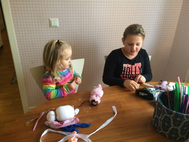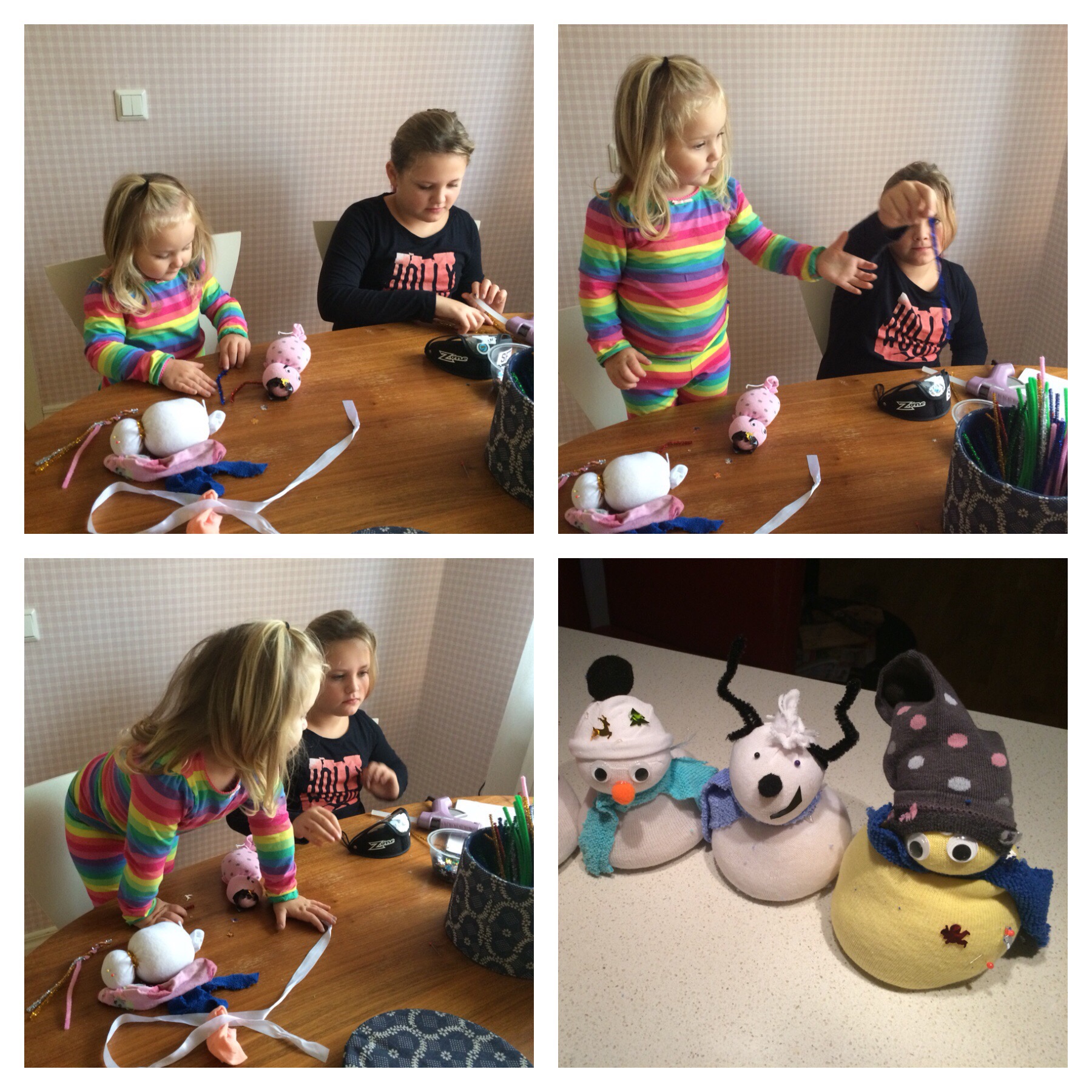 Ni pysslar. Gör asfräna dockor av strumpor och ris.