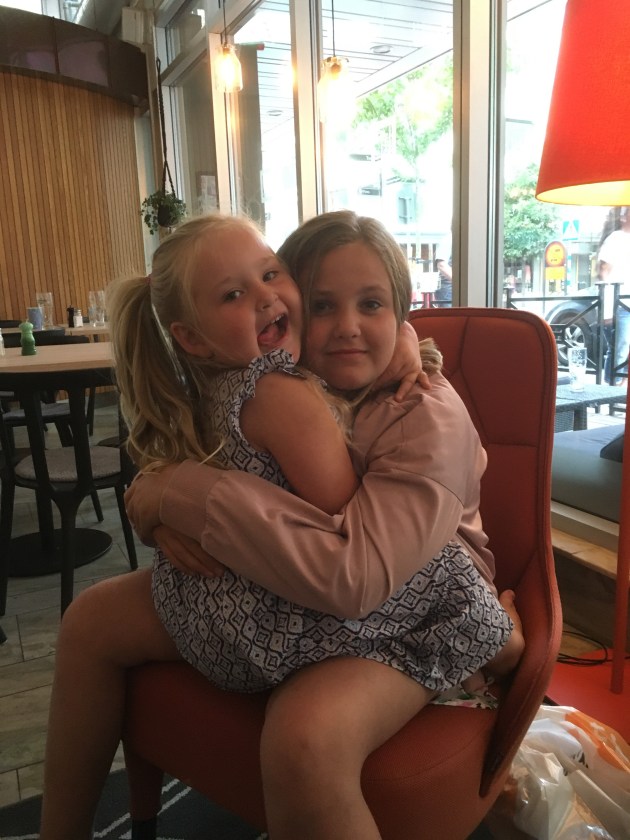 I väntan på vår beställning blev du kissnödig, och eftersom Milla är den bästa storasystern i världen så följde hon med dig till toaletten. Väl inne där så kände hon att hon själv… ja, hon behövde skapa lite utrymme för det kommande käket, så att säga. Hon lät naturligtvis dig sköta dina behov först, för så gör världens bästa storasystrar. Men sen när det blev hennes tur, när hon satt där på holken med brallorna neddragna och du väntade på att hon skulle bli klar, då passade du i brist på annat att provtrycka på alla knappar. Du började med lysknappen. Men då slocknade lyset, det blev kolmörkt, och det gillade varken du eller Milla, så du tände igen. Istället testade du den andra knappen, den med en liten rullstol på. Då hände det grejer. En stark sirén ljöd över hela O’Learysrestaurangen, och en röd lampa på utsidan över dörren började blinka hysteriskt. (Det var här ungefär som jag såg från mitt bord ute i lokalen hur barpersonalen släppte vad de höll i och skyndade till undsättning ut mot kapprummet och toaletterna).