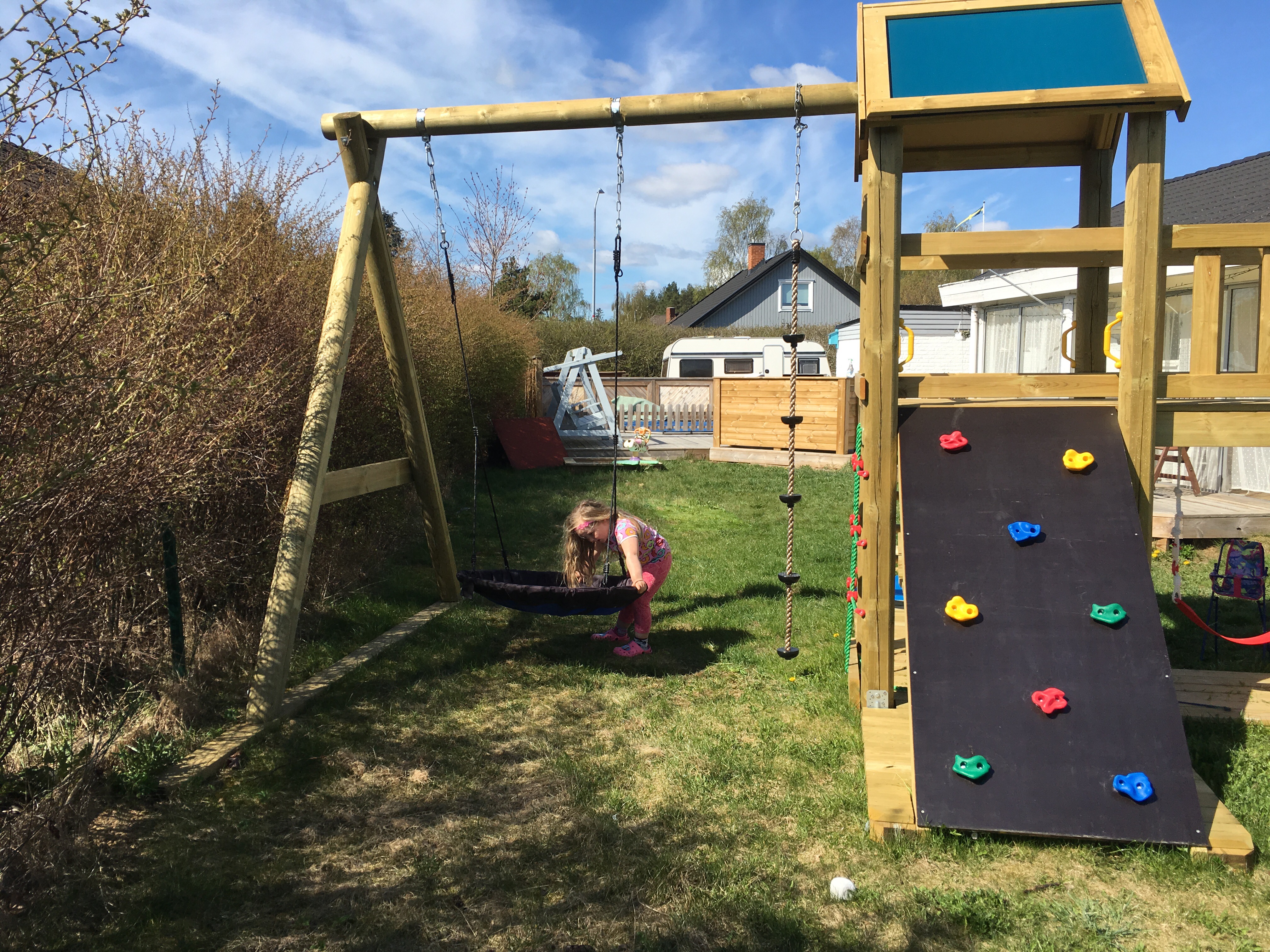 Jag har byggt en klätterställning till dig (och Milla) på baksidan av huset.