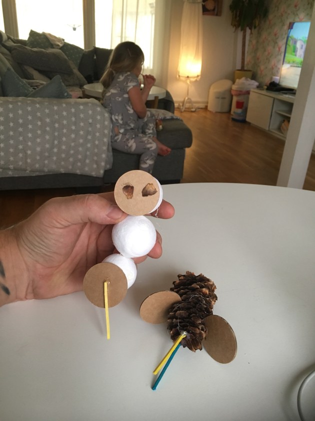 Hej älskade unge. Det är måndag, den 2:e Oktober, och det regnar ute. Jag hämtade dig precis från dagis. Som vanligt fick jag med mig en drös saker du tillverkat eller hittat. En kotte-geting, en snögubbe som kissar, och en sten. Stenen ”råkade” ramla ur fickan innan vi gick in. Hoppas att du inte fått alltför stora men för den saken.